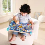 Copiii tai pot naviga intr-un labirint magnetic, ghidand margele colorate prin spatiu sau pot intoarce puzzle-urile tangram care cresc odata cu ei, de la forme simple la modele complicate, stimuland creativitatea si rezolvarea problemelor. Cu un ghid si carduri de forma, invatarea este o explozie pe aceasta tabla cu doua fete.