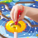 Cu urmele sale complicate si margelele colorate, copiii pot folosi stiloul magnetic pentru a muta margelele si chiar pentru a aprinde bilele de otel in labirintul plin de elemente spatiale.