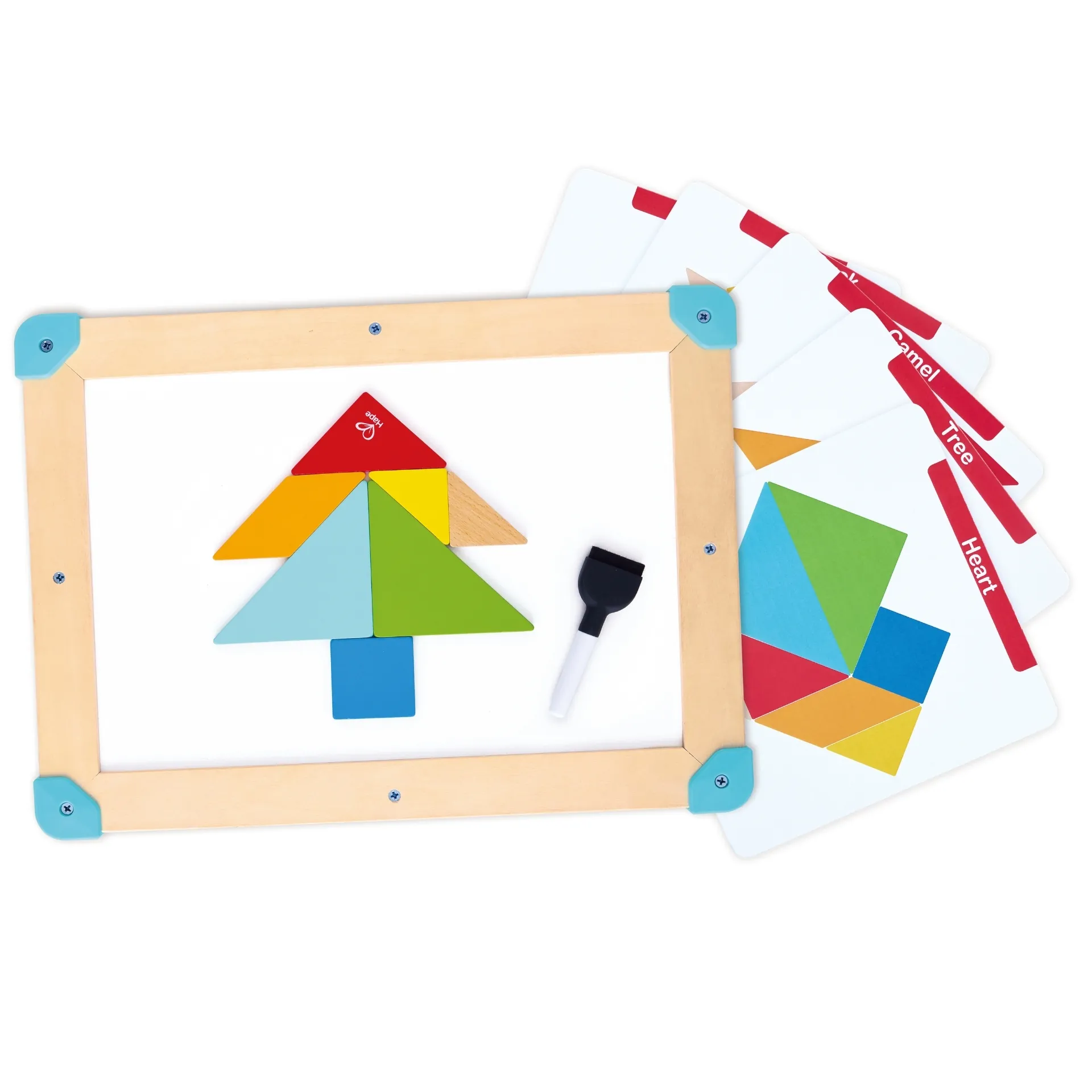 Partea tangram este o calatorie progresiva. De la recunoasterea formei pana la construirea creativa, copiii trec prin diferite 3 niveluri de dificultate, acutandu-si abilitatile de rezolvare a problemelor.