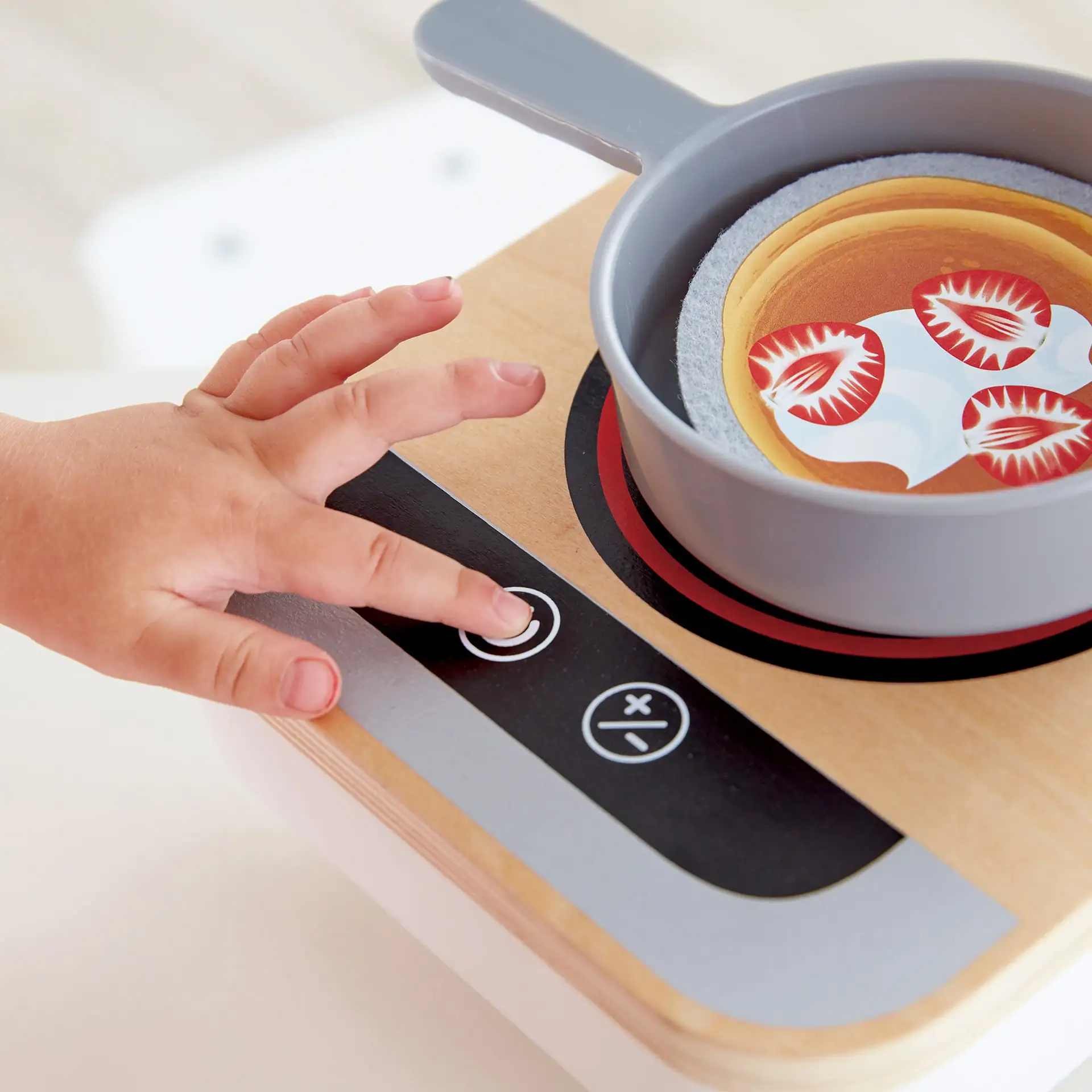 Jucarie din lemn, Aragaz cu ventilator, Hape. Exersati sa gatiti mancarurile preferate la fel ca un adevarat bucatar cu acest aragaz realist si o tigaie.