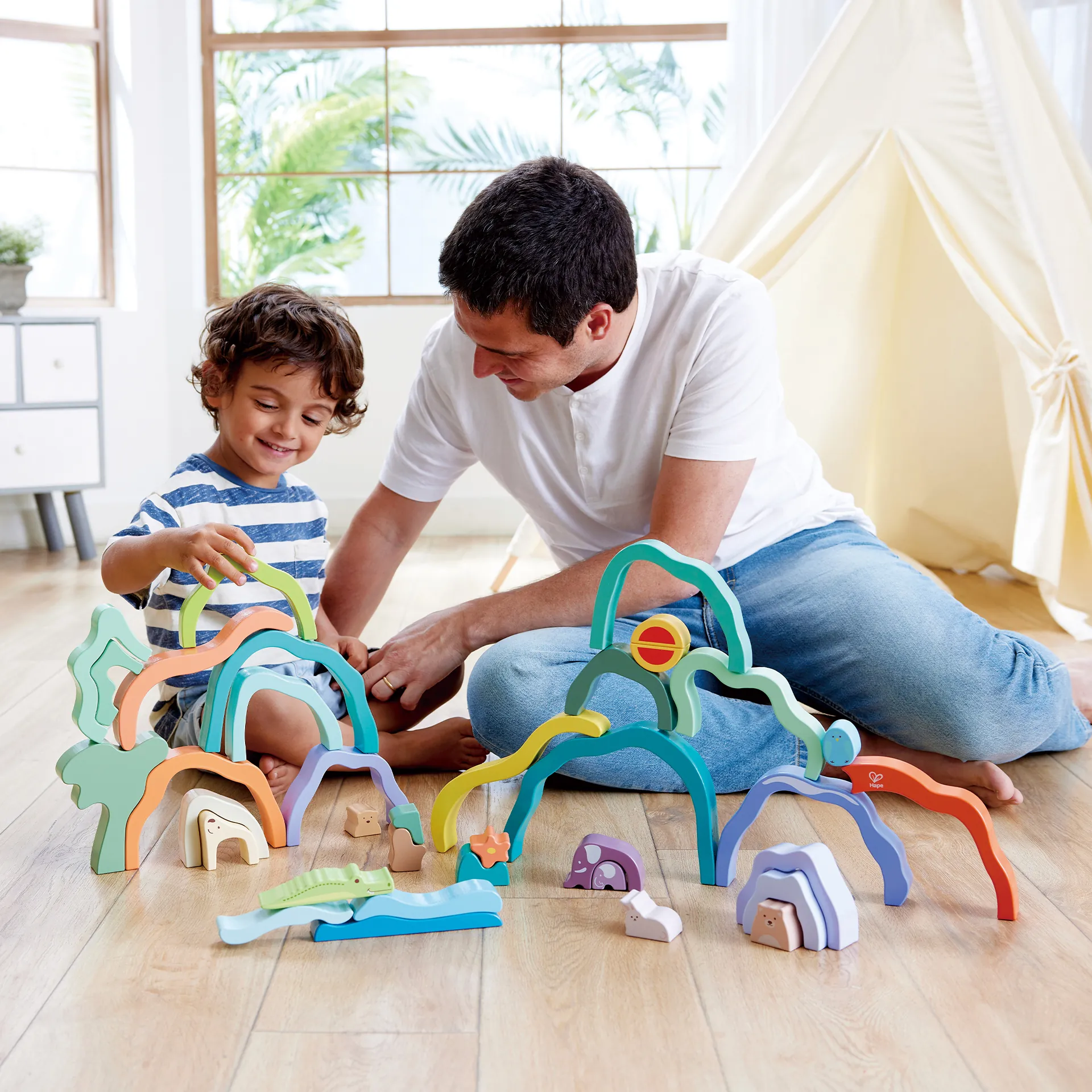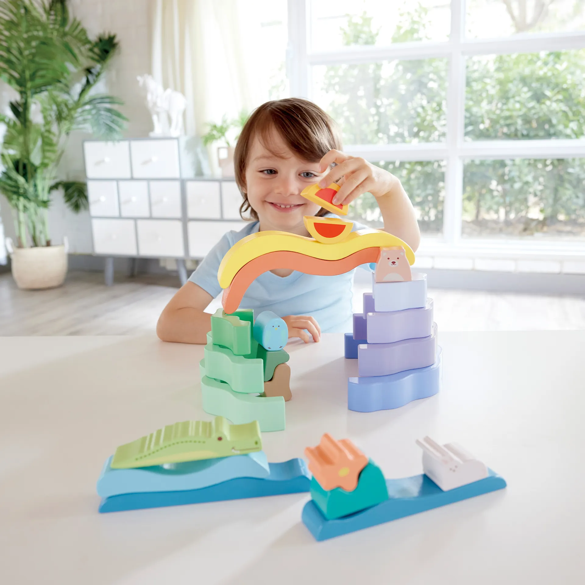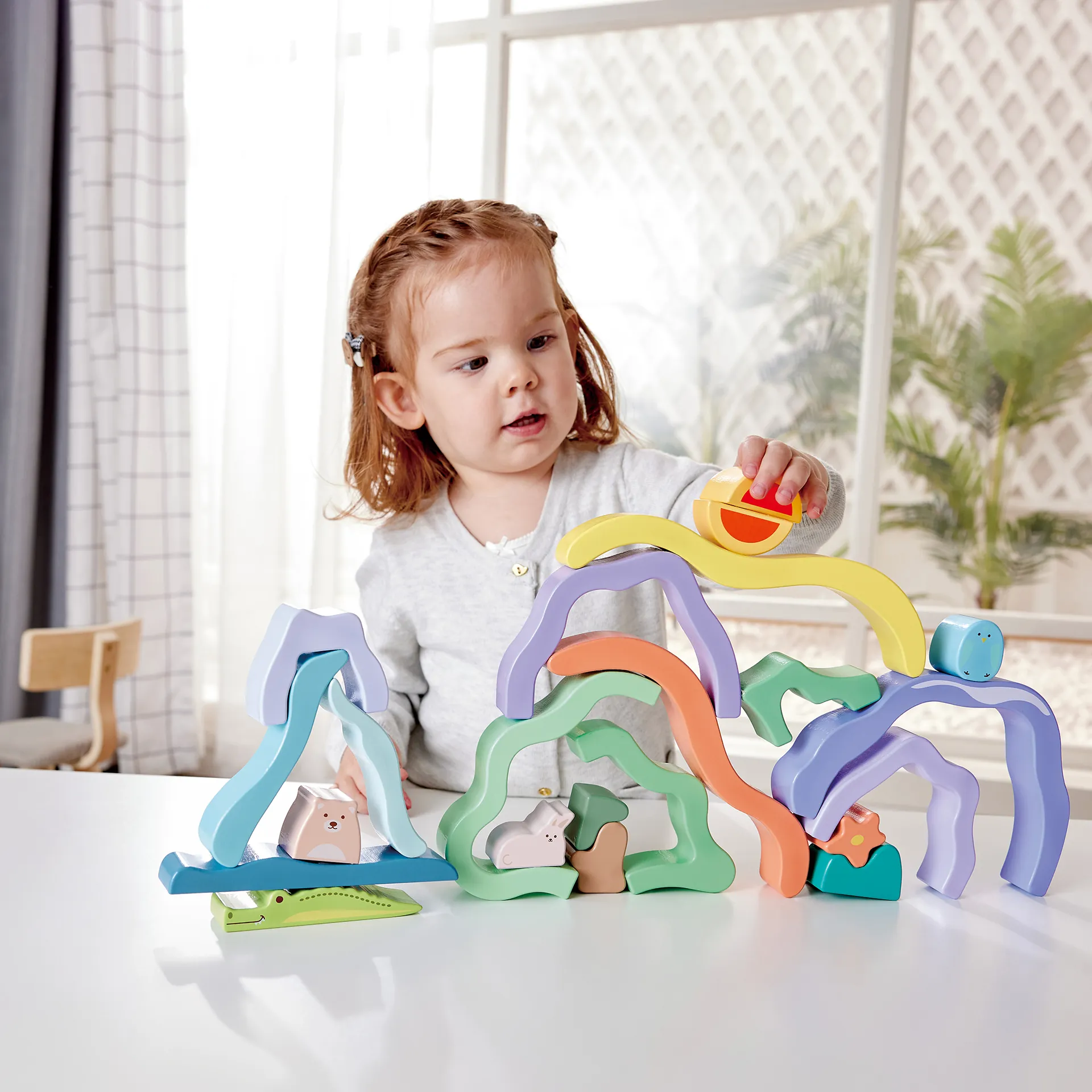Cu aceste blocuri, copiii isi pot imbunatati dexteritatea mainilor si a degetelor in timp ce ridica si echilibreaza blocurile de diferite dimensiuni.
