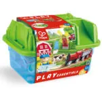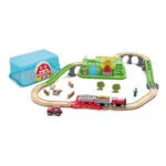 Contine o multime de accesorii care sa te ajute sa fii creativ si sa inventezi povesti. Setul include o cutie cu capac, doua sine de plastic in forma de S, zece sine mici curbate, trei sine drepte, doi copaci, o gaina cu cuib, o vaca, o oaie, trei garduri, o cutie de mere, un cap de camion, o locomotiva cu doua masini, o cabana, un pod, o moara de vant, sapte sine de plastic si un pod. Excelent pentru a hrani creativitatea si imaginatia. Util pentru a invata despre agricultura si munca grea! Ajuta copiii sa invete sa colecteze, sa organizeze si sa rezolve lucrurile in mod independent.