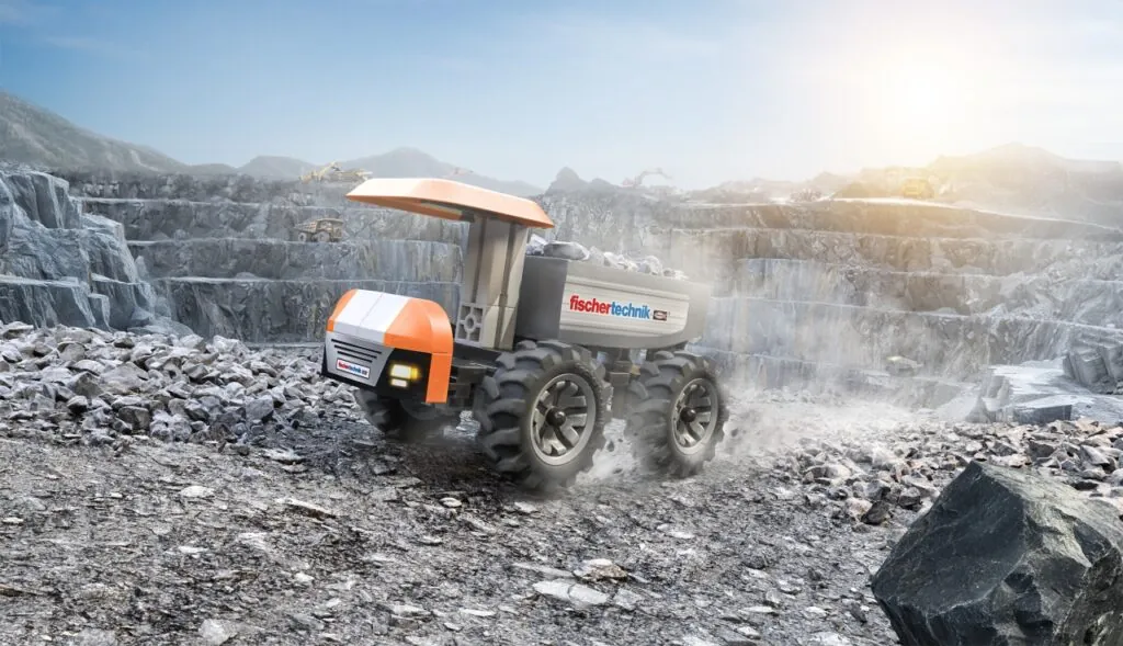 Kit STEM Camion de santier de asamblat si manevrat, Fischertechnik! Camion de asamblat pentru mici constructori