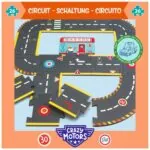 Un circuit uriaș alcătuit din 26 de piese de dimensiuni mari pentru a crea diferite trasee pe care să circule mașinuțele Crazy Motors. Fiecare piesă este ilustrată cu detalii captivante și se combină pentru a forma piste personalizate, pline de acțiune. Circuitul este compatibil cu alte puzzle-uri Crazy Motors și poate fi extins cu ușurință. Perfect pentru micii pasionați de mașini, acest set stimulează imaginația, dezvoltă abilitățile motrice și oferă ore întregi de activitate și distracție!