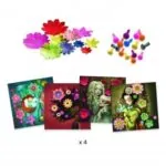 Un set creativ plin de candoare, pentru a transforma 4 portrete ilustrate în opere de artă florale 3D! Cu peste 100 de flori din hârtie în relief, predecupate în forme și culori variate, copiii creează coafuri spectaculoase și decoruri pline de viață pentru patru eroine misterioase. Asamblarea este simplă și distractivă, datorită agrafelor colorate tip brad, care permit suprapunerea florilor pentru a adăuga volum și profunzime imaginilor. Activitatea dezvoltă răbdarea, motricitatea fină și simțul estetic, într-o lume ilustrată care va cuceri atât copiii, cât și adulții.
