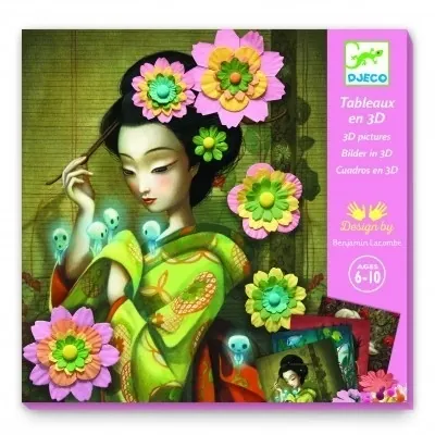 Set creativ Portrete cu flori din hartie, Djeco. Decor floral 3D – Creează portrete magice cu flori din hârtie!