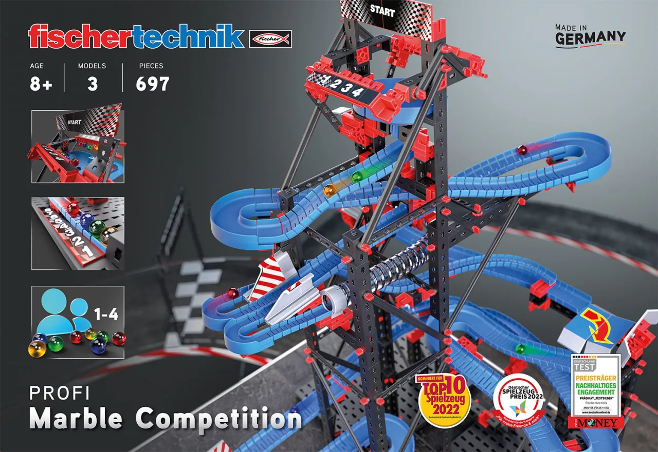 Set de constructie, Cursa cu bile metalice, Fischertechnik. Kit STEM Cursa cu bile metalice