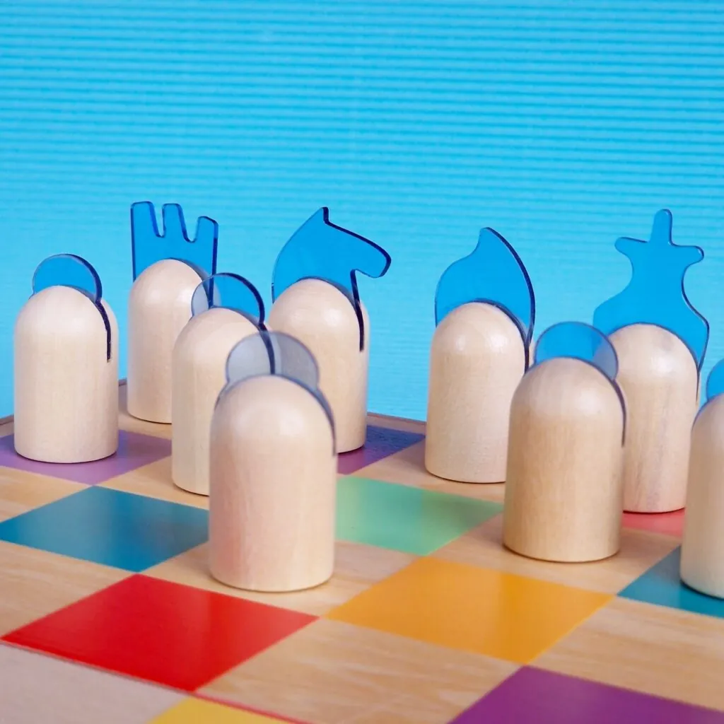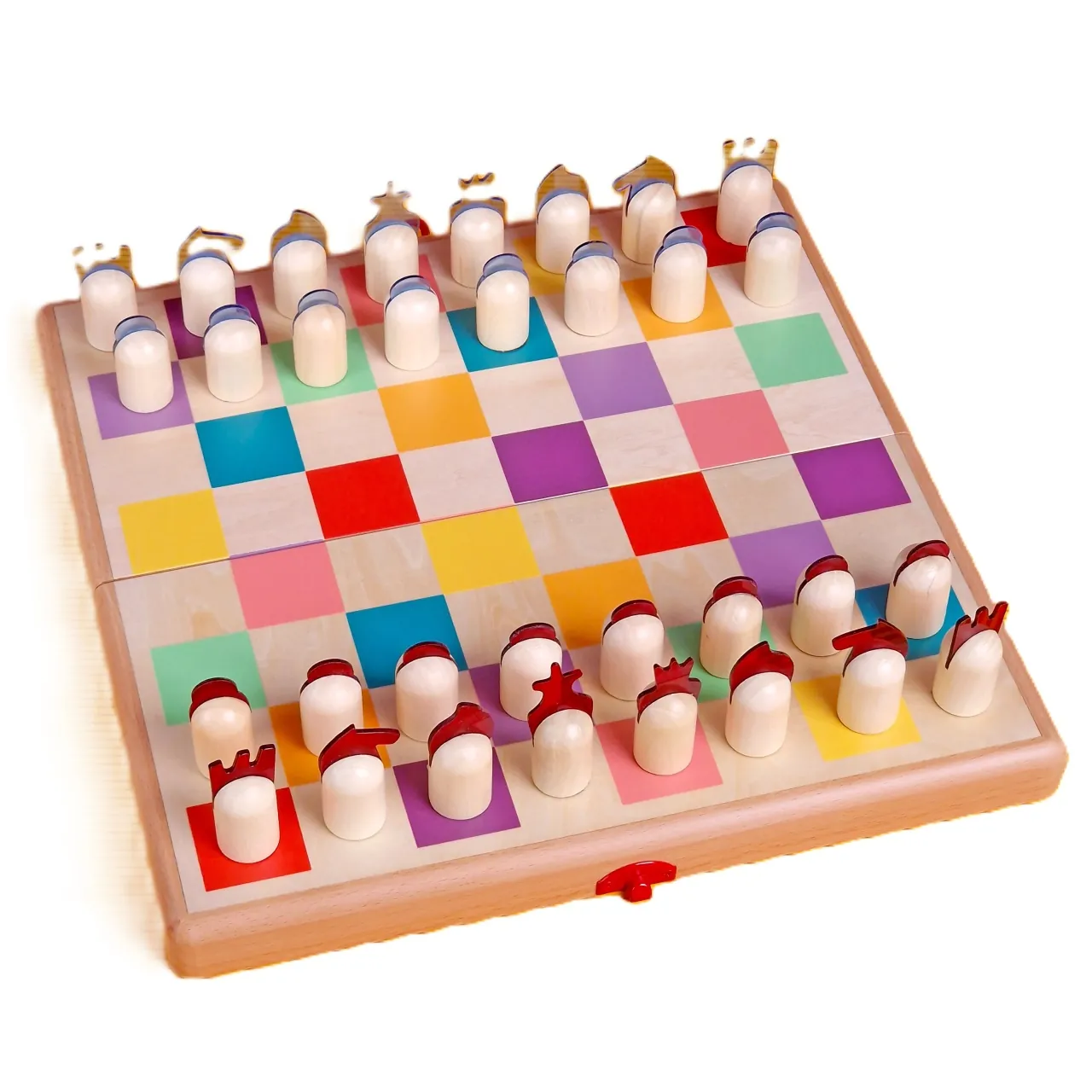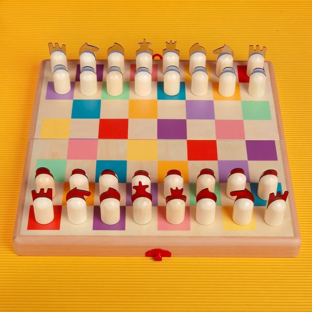 Set 3-în-1 care combină stilul natural al lemnului cu elemente moderne vii. Realizat din lemn de fag și acril transparent, acest set oferă un tablou de joc durabil, cu colțuri rotunjite pentru siguranță. Piesele de șah au un design minimalist, cu detalii acrilice subtile, oferind o atingere tactilă plăcută și un aspect rafinat.
