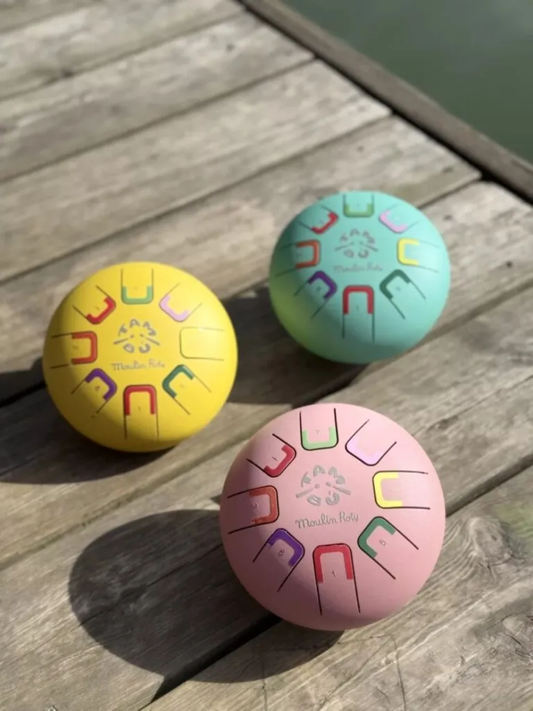 Un instrument excepțional pentru a introduce copiii în lumea fascinantă instrumentelor de percuție. 8 note codificate prin culori și numere pentru a fi percutate cu palmele, vârful degetelor sau cu bețe de tobe. Concepută special pentru copii, această tobă metalică are un design prietenos și culori atrăgătoare, fiind un instrument ideal pentru inițierea în muzică și dezvoltarea ritmului.