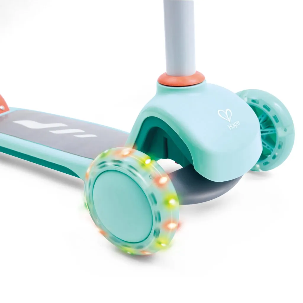 Aluneca cu stil si agilitate cu scuterul nostru cu trei roti, care este reglabil pe inaltime, are roti luminoase si este foarte usor de configurat!